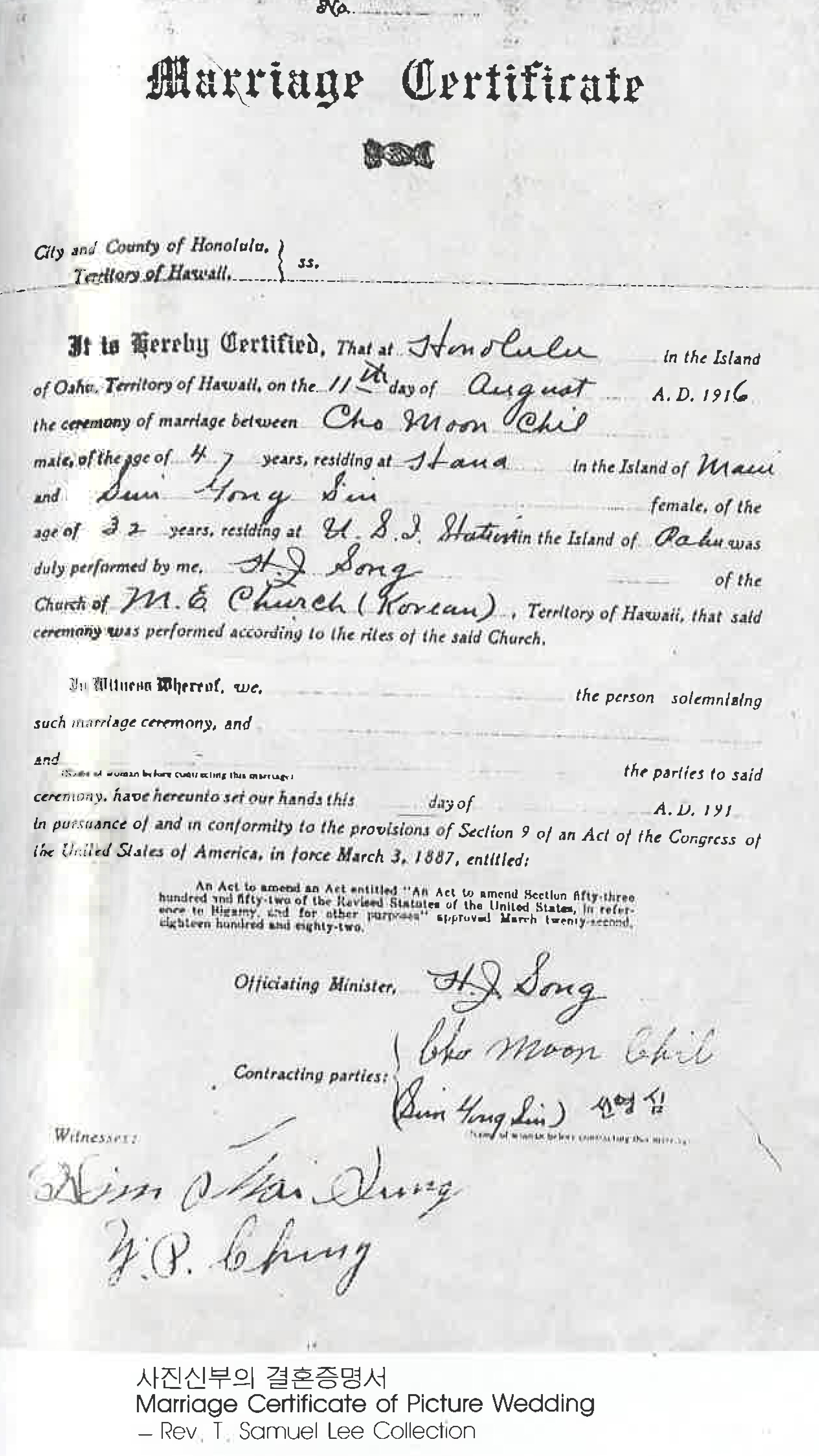 사진신부의 결혼증명서 Marriage Certificate of Picture Wedding