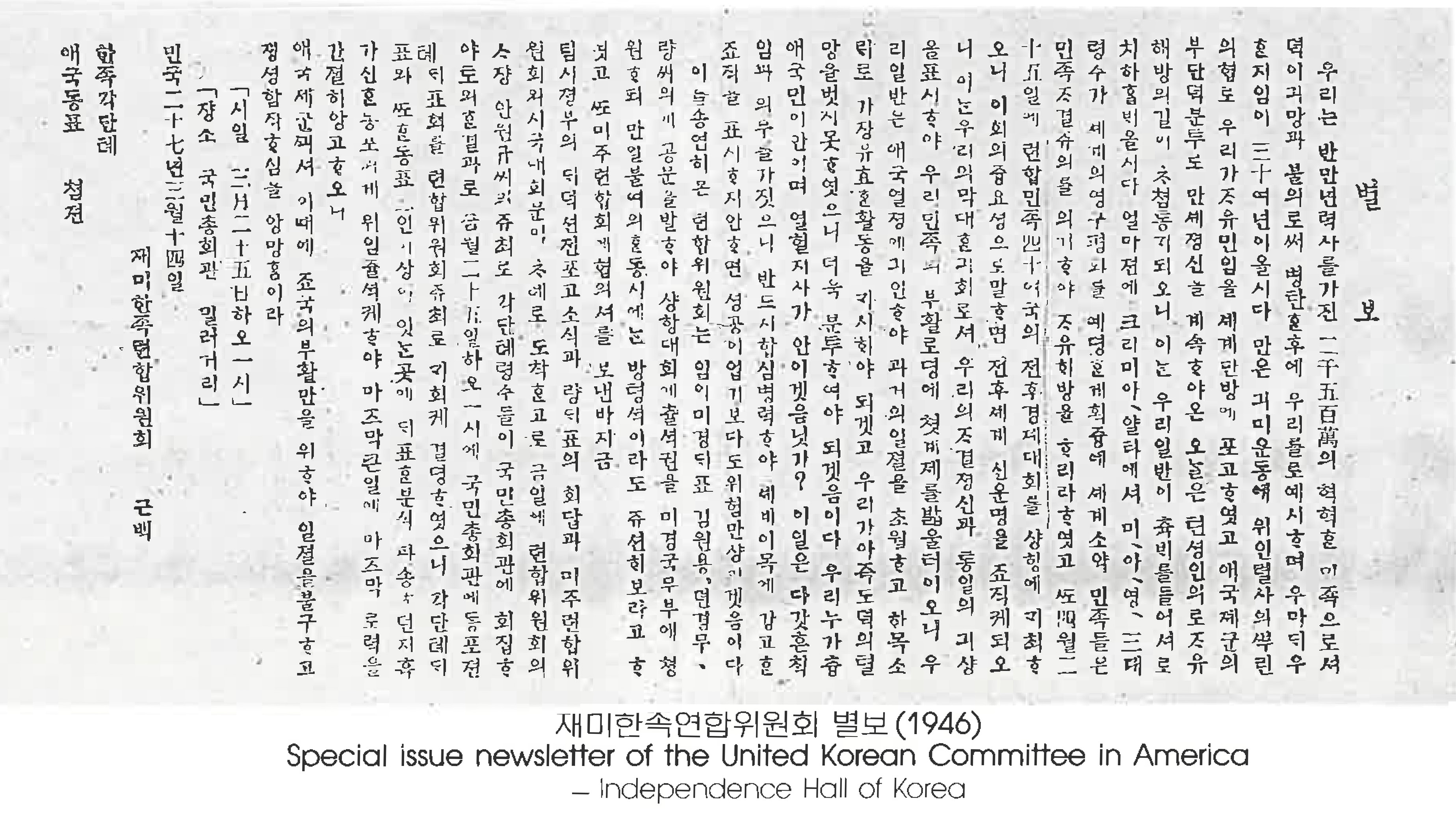 재미한족연합위원회 별보(1946) Special issue newsletter of the United Korean Committee in America