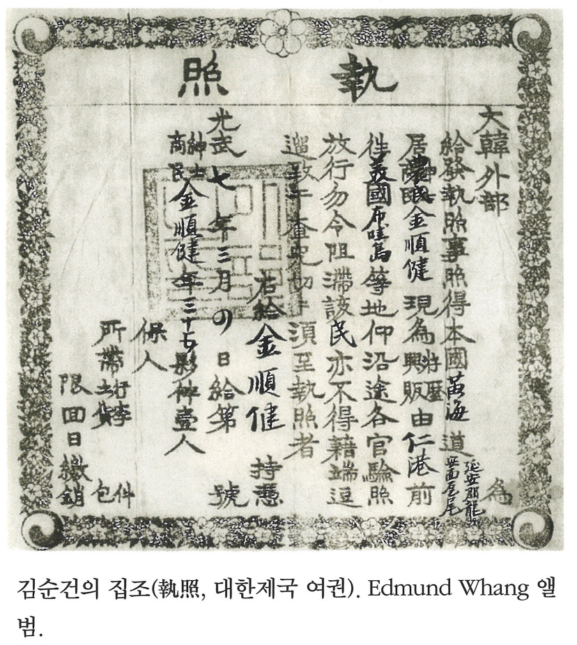 김순건의 집조(執照, 대한제국 여권). Edmund Whang 앨범.