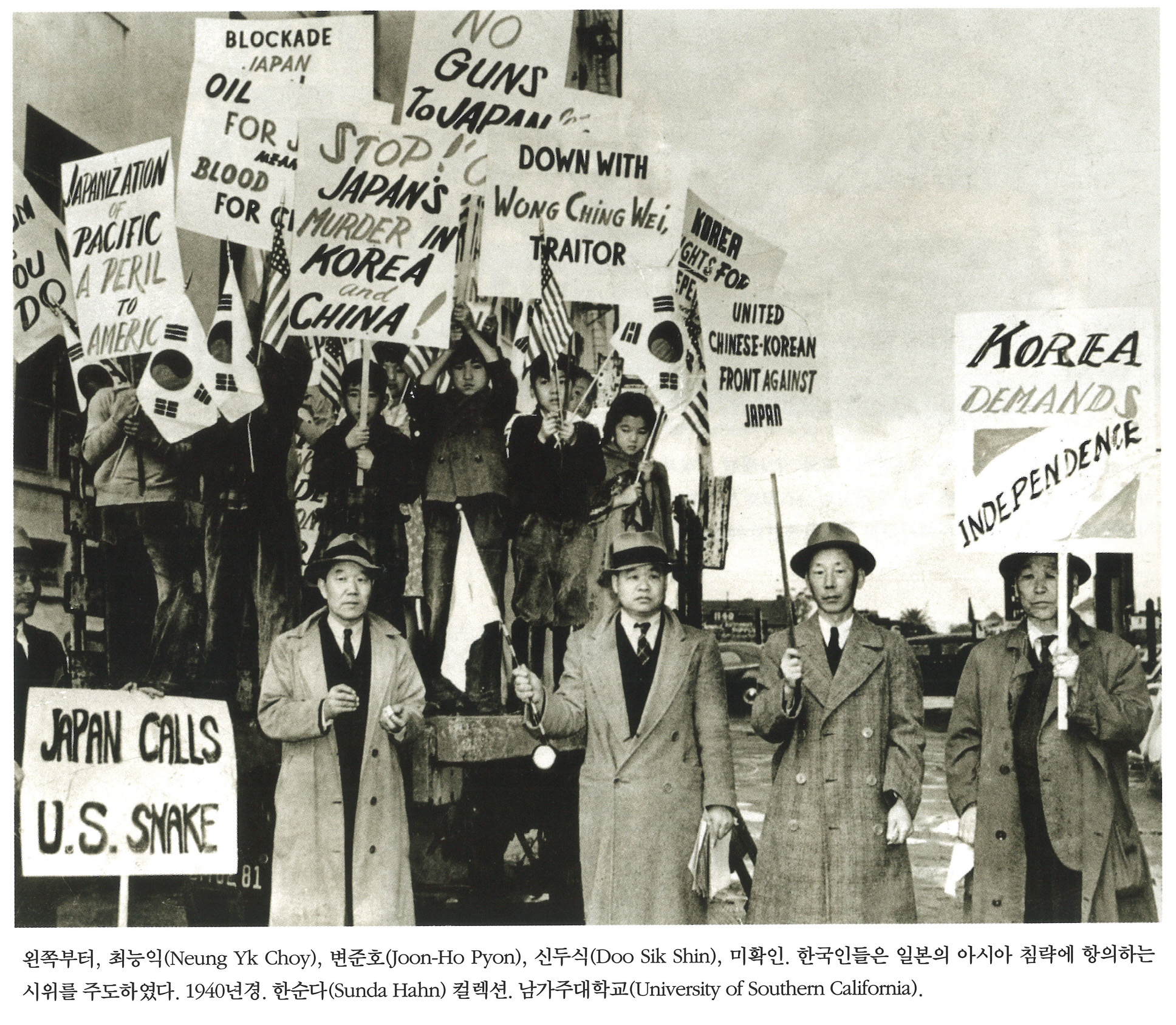 alpBZxrz... | 왼쪽부터, 최능익(Neung Yk Choy), 변준호(Joon-Ho Pyo), 신두식(Doo Sik Shin), 미확인. 한국인들은 일본의 아시아 침략에 항의하는 시위를 주도하였다. 1940년 한순다(Sunda Hahn) 컬렉션. 남가주대학교(Universiry of Southern California). | 최능익, 변준호, 신두식, 한순다 | - | img2 | 25-09-14 | 25-12-06 | |||||||||||||||