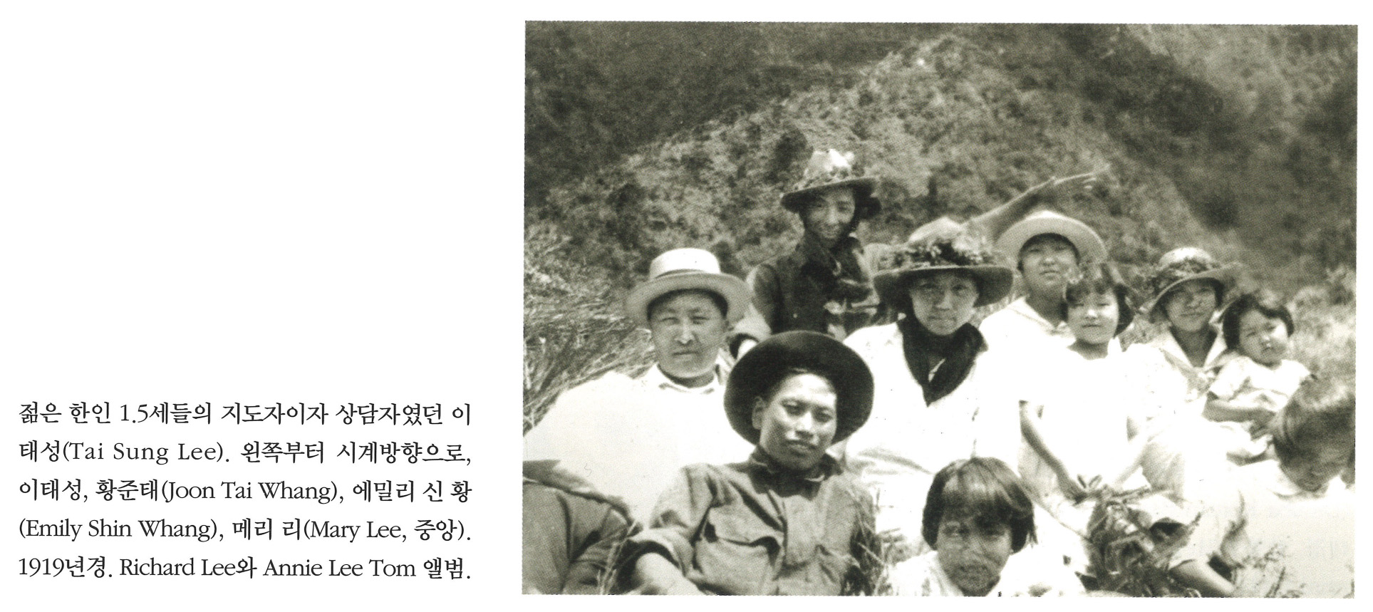 AH0kVsbl... | 젊은 한인 1.5세들의 지도자이자 상담자였던(Tai Sung Lee). 왼쪽부터 시계방향으로, 이태성, 황준태(Joon Tai Whang), 에밀리 신 황(Emily Shin Whang), 메리 리(Mary Lee, 중앙.) 1919년경. Richard Lee와 Annie Lee Tom앨범 | Tai Sung Lee, 이태성, 황준태(Joon Tai Whang), 에밀리 신 황(Emily Shin Whang), 메리 리(Mary Lee), Richard Lee, Annie Lee Tom | - | img2 | 25-09-14 | 25-12-06 | |||||||||||||||