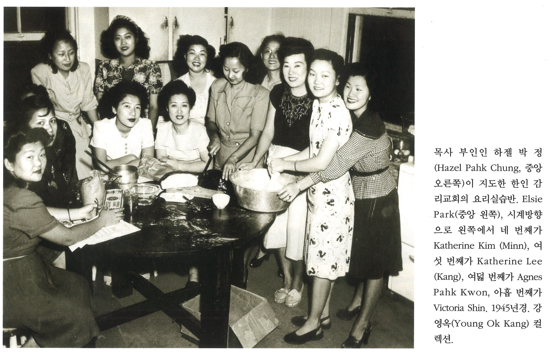 9I9sbVGb... | 목사 부인인 하젤 박 정(Hazel Pahk Chung, 중앙 오른쪽)이 지도한 한인 감리교회의 요리실습반. Elsie Park(중앙 왼쪽), 시계 방향으로 왼쪽에서 네 번째가 Katherine Kim(Minn), 여섯 번째가 Katherine Lee(Kang), 여덟 번째가 Agnes Pahk Kwon, 아홉 번째가 Victoria Shin. 강영옥(Yong Ok Kang) 컬렉션. | 하젤 박 정, Elsie Park, Katherine Kim, Katherine Lee, Agnes Pahk Kwon, Victoria Shin, 강영옥. | - | img2 | 25-09-14 | 25-12-06 | |||||||||||||||