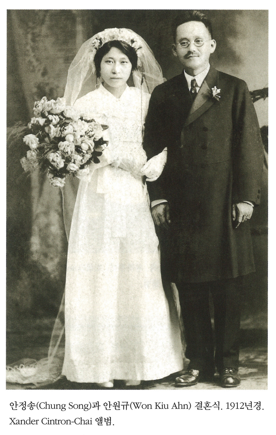 안정송(Chung Song)과 안원규(Won Kiu Ahn) 결혼식. 1912년경. Xander Cintron-Chai 앨범. |