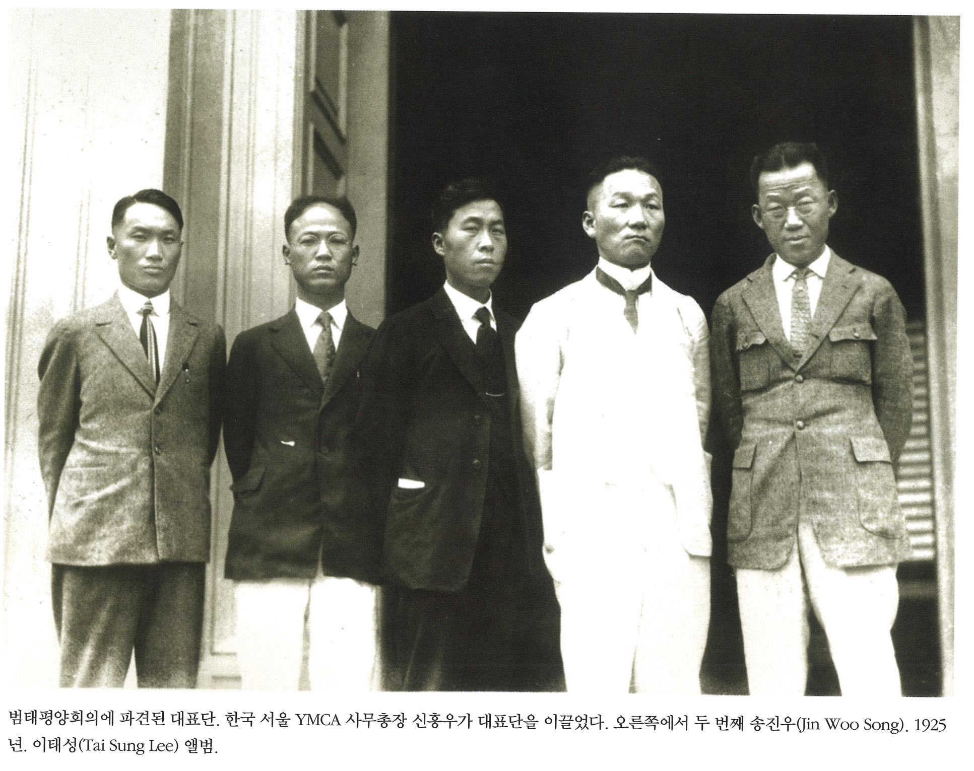XJB.FoHu... | 범태평양회의에 파견된 대표단. 한국 서울 YMCA 사무총장 신흥우가 대표단을 이끌었다. 오른쪽에서 두 번째 송진우(Jin Woo Song). 1925년. 이태성(Tai Sung Lee) 앨범. | 신흥우, 송진우, 이태성 | - | img2 | 25-09-14 | 25-12-06 | |||||||||||||||