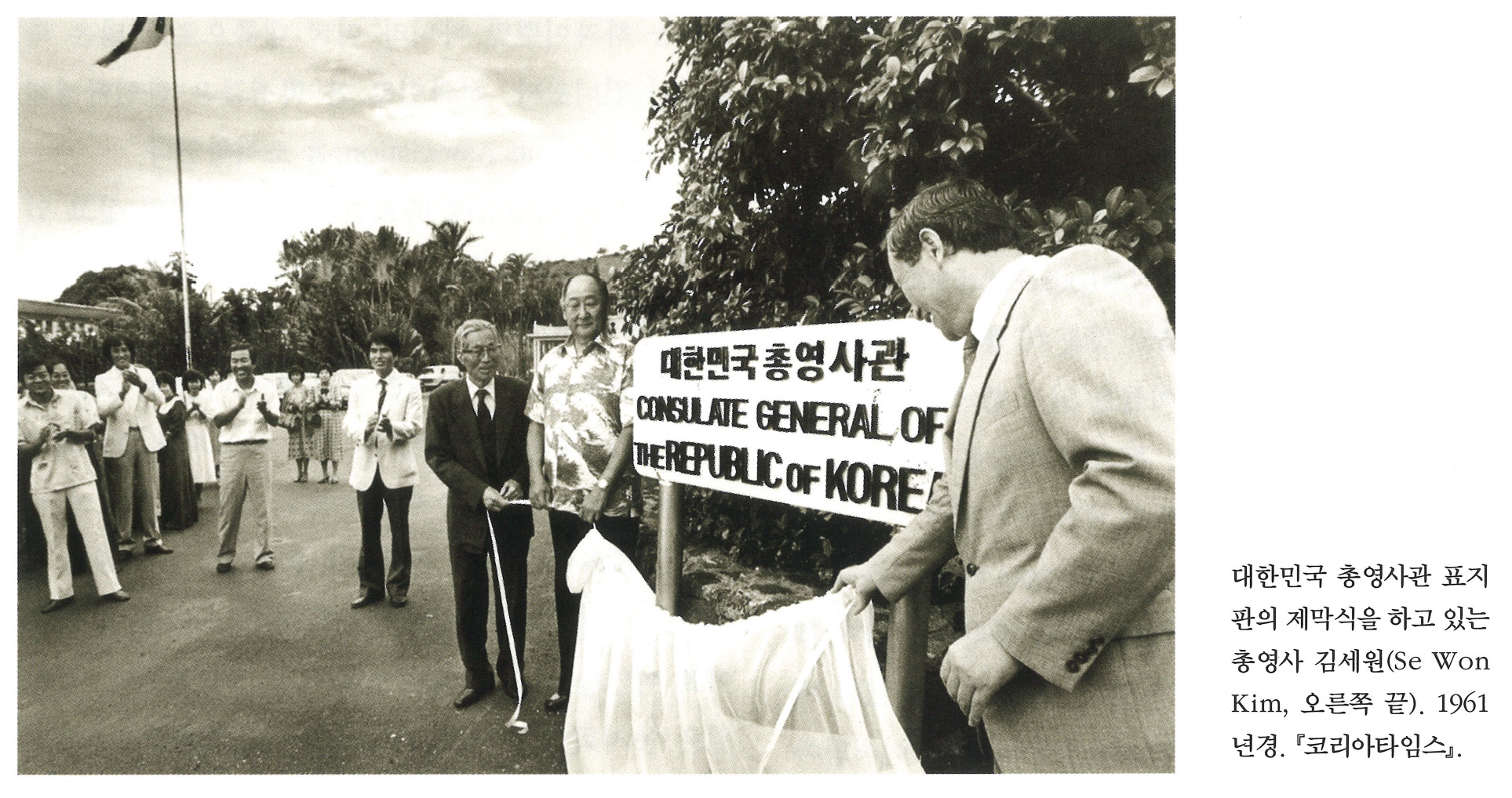 XjYx5.IK... | 대한민국 총영사관 표지판의 제막식을 하고 있는 총영사 김세원(Se Won Kim, 오른쪽 끝). 1961년경. 『 코리아타임스』. | 김세원 | - | img2 | 25-09-14 | 25-12-06 | |||||||||||||||