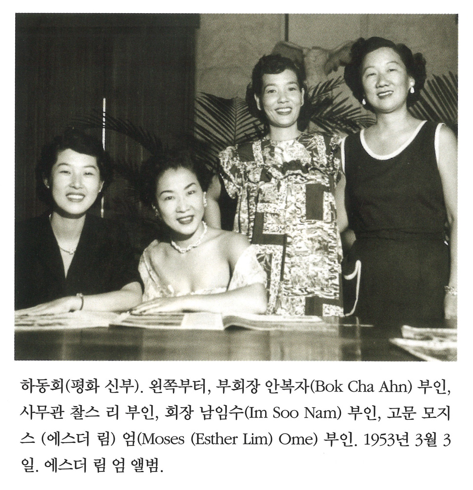 xFmt3jdJ... | 하동회(평화 신부). 왼쪽부터, 부회장 안복자(Bok Cha Ahn) 부인, 사무관 찰스 리 부인, 회장 남임수(Im Soo Nam) 부인, 고문 모지스 (에스더 림) 엄(Moses (Esther Lim) Ome) 부인. 1953년 3월 3일. 에스더 림 엄 앨범. | 하동회, 안복자, 찰스 리, 남임수, 모지스, 에스더 림 엄. | - | img2 | 25-09-14 | 25-12-06 | |||||||||||||||