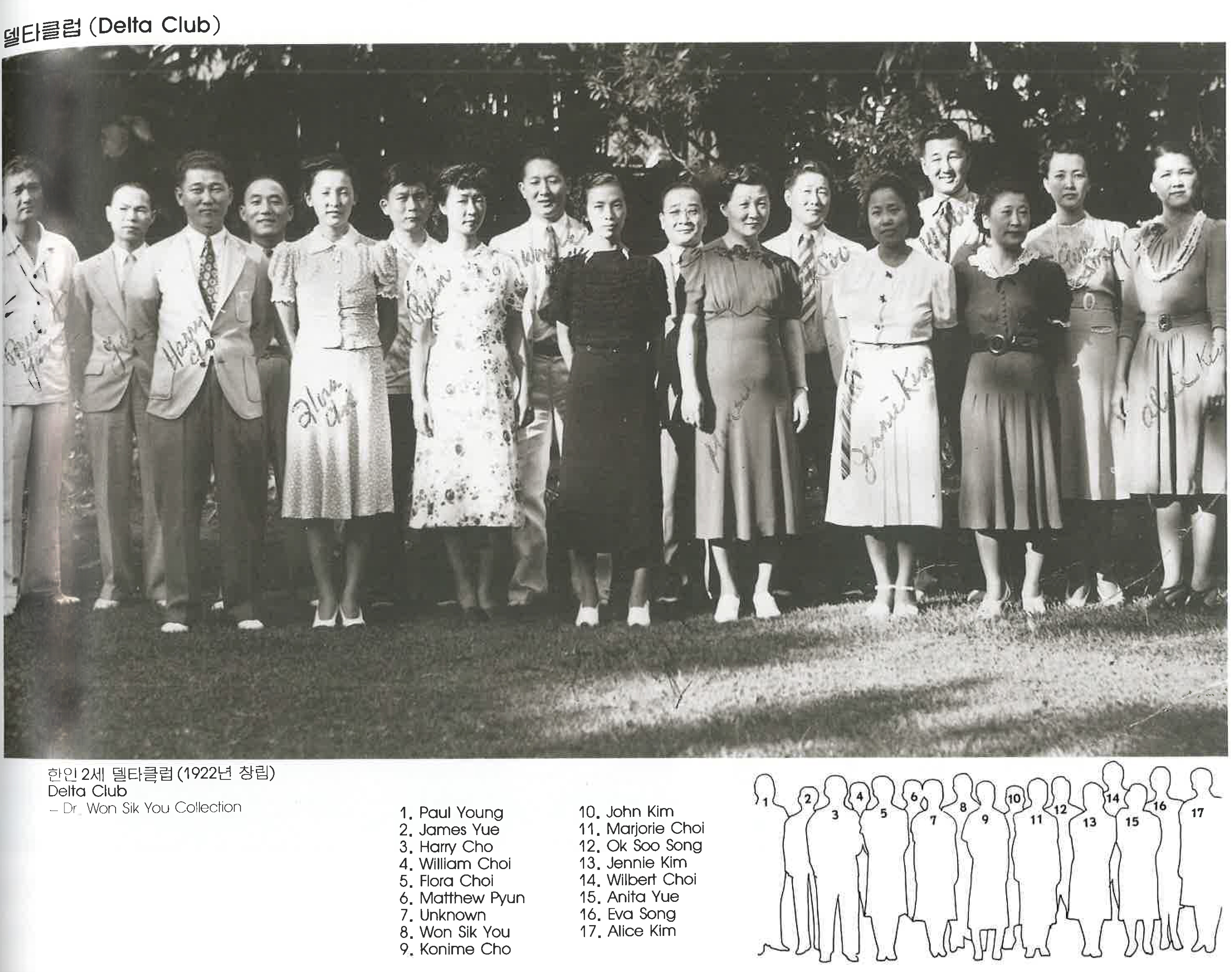 iFapT3ia... | 한인 2세 델타클럽 (1992년 창립) Delta Club - Dr Won Sik You Collection 1. Paul Young 2. James Yue 3. Harry Cho 4. William Choi 5. Flora Choi 6. Matthew Pyun 7. Unknown 8. Won Sik You 9. Konime Cho 10. John Kim 11. Marjorie Choi 12. Ok &oo Song 13. Jennie Kim 14. Wilbert Choi 15. Anita Yue 16. Eva Song 17. Alice Kim | Paul Young, James Yue, Harry Cho, William Choi, Flora Choi, Matthew Pyun, Unknown, Won Sik You, Konime Cho, John Kim, Marjorie Choi, Ok &oo Song, Jennie Kim, Wilbert Choi, Anita Yue, Eva Song, Alice Kim | 그들의 발자취 | 107 | - | img2 | 25-09-14 | 26-01-01 | |||||||||||||