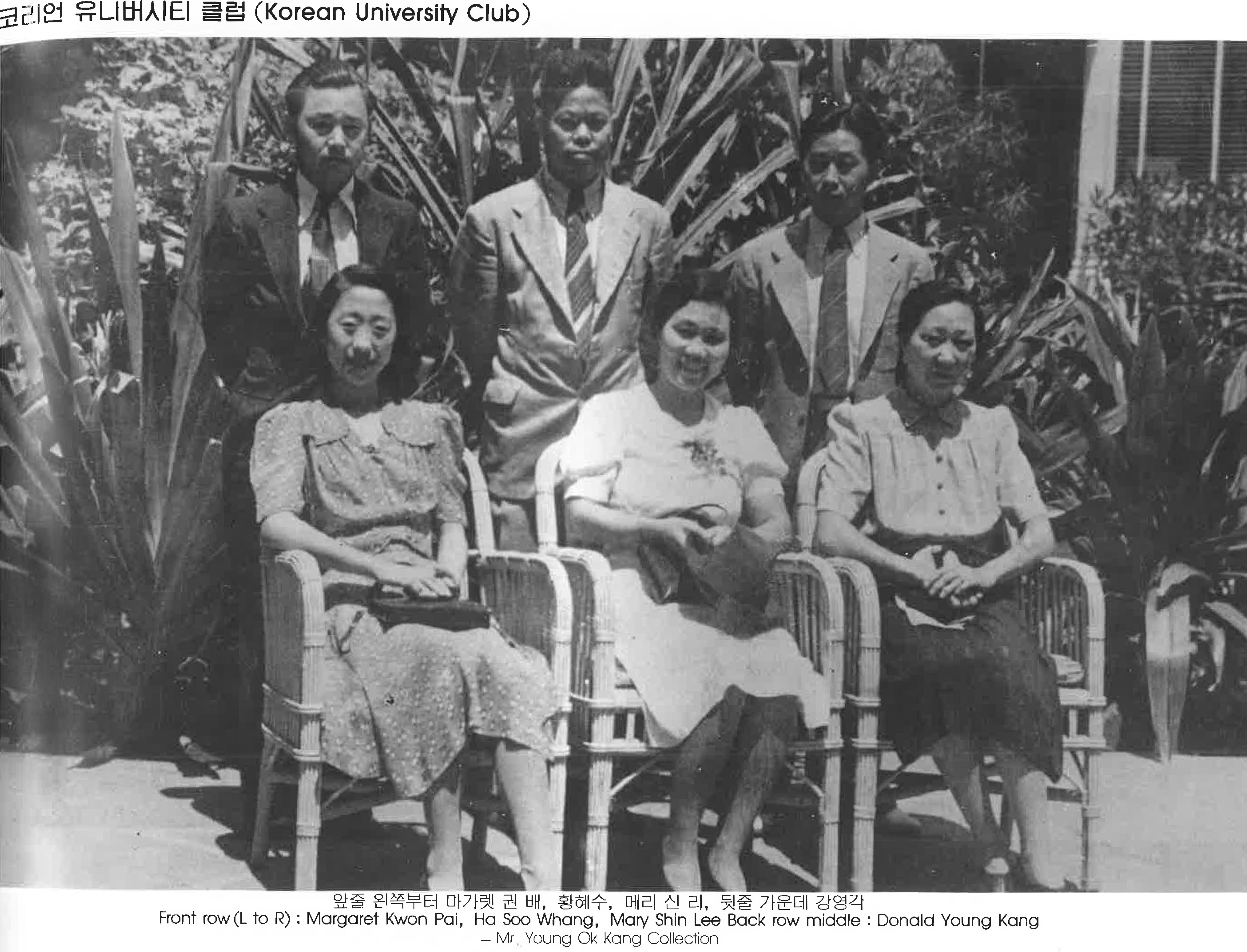 s.hVWKFF... | 코리언 유니버시티 클럽 (Korean University Club) 앞줄 왼쪽부터 마가렛 권 배,황혜수,매리 신 리, 뒷줄 가운데 강영각 Front row(L to R): Margaret Kwon Pai, Ha Soo Whang, Mary Shin Lee Back row middle : Donald Young Kang | 마가렛 권 배, 황혜수, 매리 신 리, 강영각 | 그들의 발자취 | Mr. Young Ok Kang Collection | 105 | - | img2 | 25-09-14 | 25-12-06 | ||||||||||||