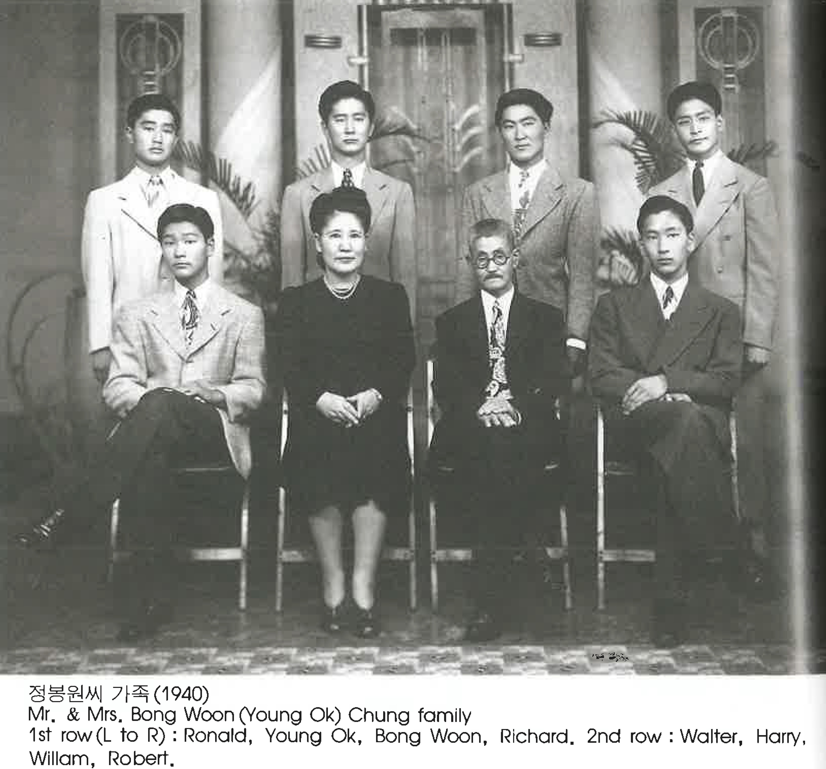 rNyScewc... | 정봉원씨 가족(1940) Mr. & Mrs. Bong Woon (Young Ok) Chung family 1st row(L to R): Ronald, Young Ok, Bong Woon, Richard. 2nd row : Walter, Harry, Wiliam, Robert. | 정봉원, 영옥, 로널드, 리차드, 월터, 해리, 윌리엄, 로버트 | 그들의 발자취 | 56 | - | img2 | 25-09-14 | 25-12-06 | |||||||||||||