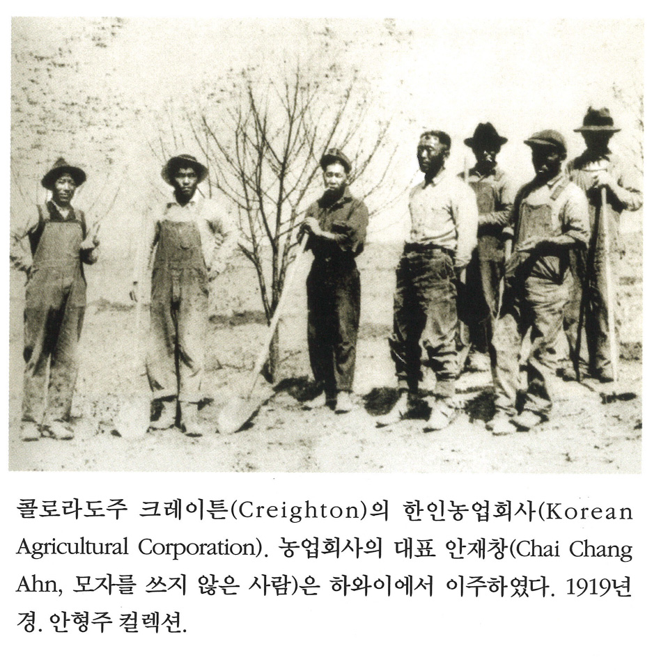RVJNEOB0... | 콜로라도주 크레이튼(Creighton)의 한인농업회사(Korean Algricultural Copertaion). 농업회사의 대표 안재창(Chai Chang Ahn, 모자를 쓰지 않은 사람)은 하와이에서 이주하였다. 1919년경. 안형주 컬렉션. | 안재창 | - | img2 | 25-09-14 | 25-12-06 | |||||||||||||||