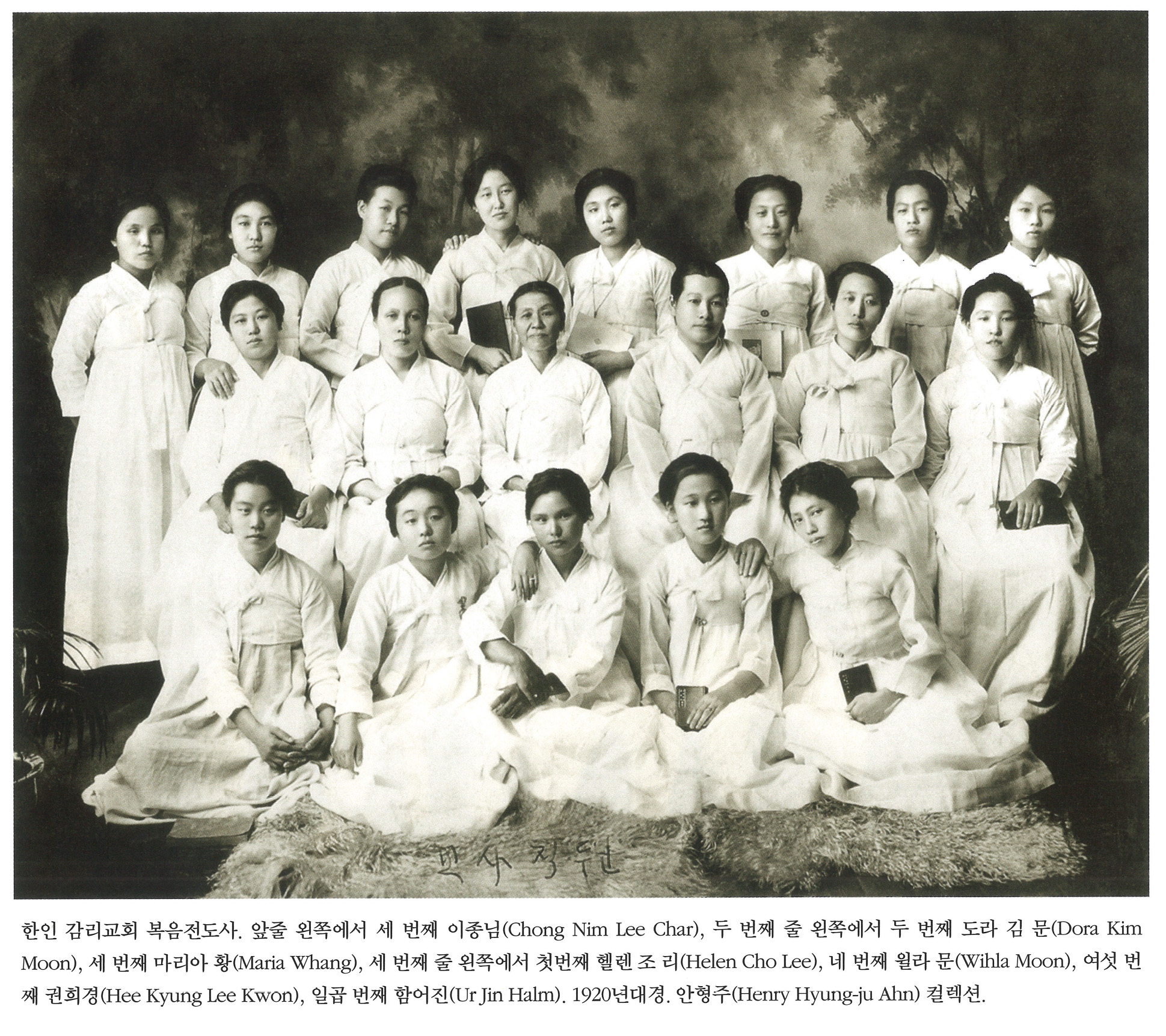 oLK8sGjP... | 한인 감리교회 복음전도사. 앞줄 왼쪽에서 세 번째 이종님(Chong Nim Lee Char), 두 번째 줄 왼쪽에서 두 번째 도라 김 문(Dora Kim Moon), 세 번째 마리아 황(Maria Whang), 세 번째 줄 왼쪽에서 첫 번째 헬렌 조 리(Helen Cho Lee), 네 번째 윌라 문(Wihla Moon), 여섯 번째 권희경(Hee Kyung Lee Kwon), 일곱 번째 함어진(Ur Jin Halm). 1920년대경. 안형주(Henry Hyung-ju Ahn) 컬렉션. | 이종님, 도라 김 문, 마리아 황, 헬렌 조 리, 윌라 문, 권희경, 함어진, 안형주. | - | img2 | 25-09-14 | 25-12-06 | |||||||||||||||