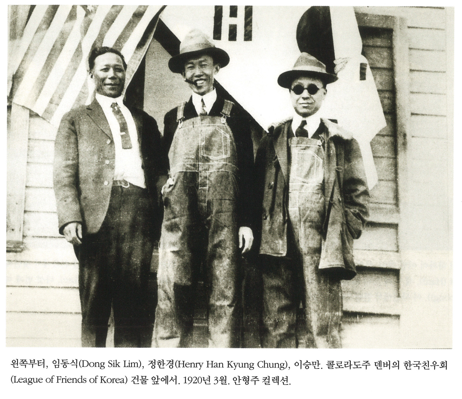 oWXBJ146... | 왼쪽부터, 임동식(Dong Sik Lim), 정한경(Henry Han Kyung Chung), 이승만. 콜로라도주 덴버의 한인친우회(League of Friends of Korea) 건물 앞에서. 1920년 3월. 안형주 컬렉션. | 임동식, 정한경, 이승만. | - | img2 | 25-09-14 | 25-12-06 | |||||||||||||||