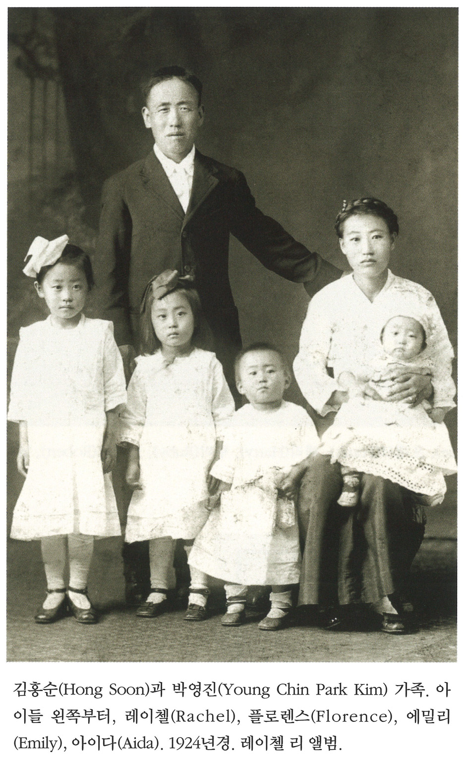 P80kEtSa... | 김홍순(Hong Soon)과 박영진(Yong Chin Park Kim) 가족. 아이들 왼쪽부터, 레이첼(Rachel), 플로렌스(Florence), 에밀리(Emily), 아이다(Aida). 1924년경. 레이첼 리 앨범. | 김홍순, 박영진, 레이첼, 플로렌스, 에밀리, 아이다. | - | img2 | 25-09-14 | 25-12-06 | |||||||||||||||