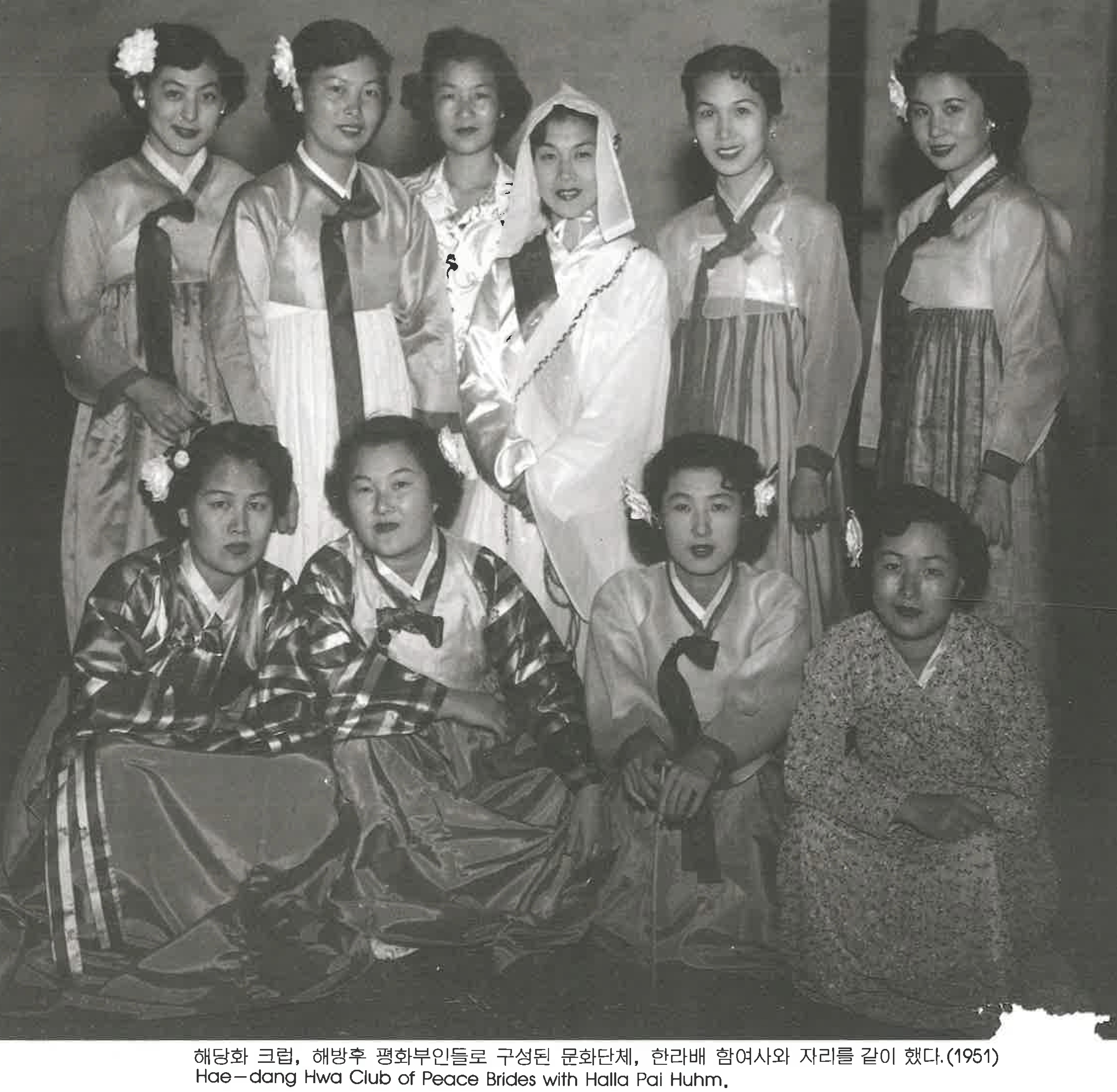 XYhge-n6... 해당화 크럽,해방후 평화부인들로 구성된 문화단체,한라배 함여사와 자리를 같이 했다.(1951) Hae-dang Hwa Club of Peace Brides with Halla Pai Huhm. 해당화 크럽, 한라배 함여사 그들의 발자취 21 25-09-14 25-12-06